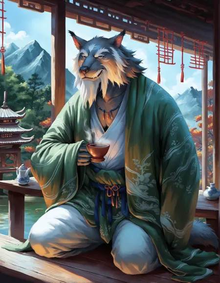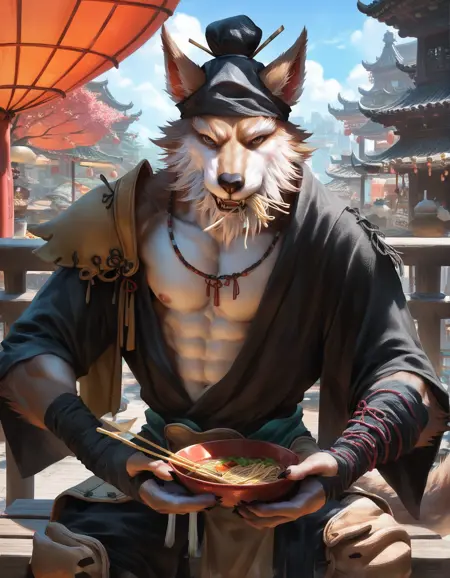 score_9, score_8_up, score_7_up, score_6_up, source_furry, <CharacterTriggerWord>, wolf yaoguai, male, solo, anthro, <OtherTags>