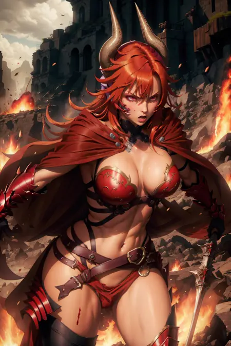 satan - 등장인물용. 최상의 결과를 위해 "붉은 머리, 보라색 눈"을 추가하세요.