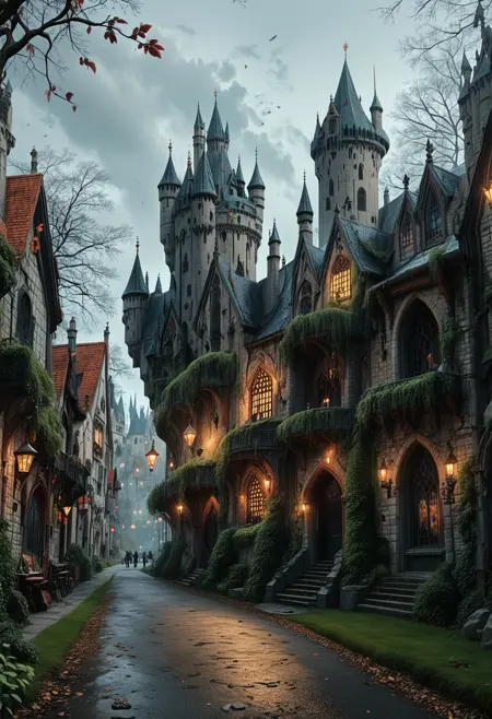我训练了这个 LoRA(+ 嵌入模型),以改善我的哥特风格角色的背景,因此数据集充满了城堡、蝙蝠和夜晚的图像。