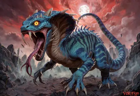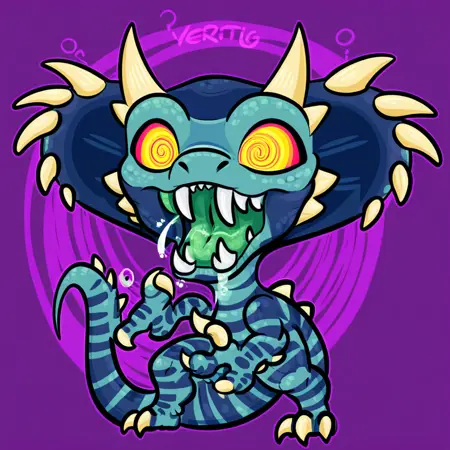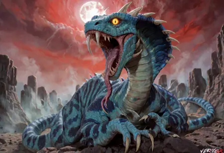 Vertigo, cobra, dinosaur, claws, horns, yellow eyes