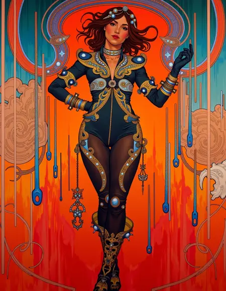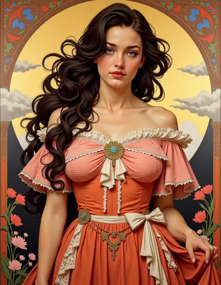 mucha_style, a painting by Alphonse Mucha depicting ...약간 덜 강력하지만 여전히 강력한 스타일: