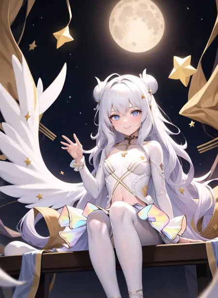 ballerina, ballet dress, white pantyhose,white_footwear, wings, ballerina, double bun, long hair,tutu,white leotard,le_malin_(muse)_(azur_lane)