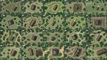一张有树木和灌木的森林地图(5个)