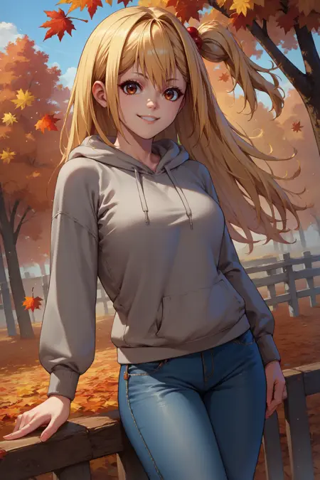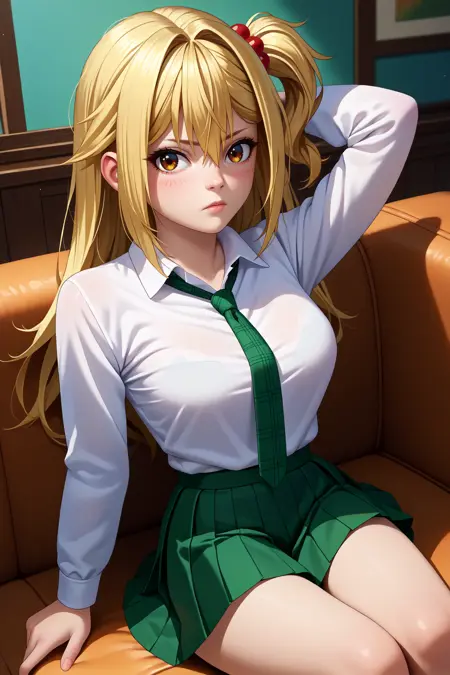 트리거 단어는 "amayr"이며, "노란 머리, 긴 머리, 한쪽을 위로 올린 스타일, 갈색 눈"이 필수입니다.