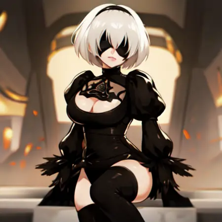 | Trained Words | 2B, 1girl, breasts, thighhighs, solo, dress, white hair, black dress, hairband, gloves, short hair, thighs, cleavage, puffy sleeves, black thighhighs, cleavage cutout, long sleeves, thick thighs, black gloves, juliet sleeves, black hairband, boots, black blindfoldCopied! 2B, 1girl, breasts, thighhighs, solo, dress, white hair, black dress, hairband, gloves, short hair, thighs, cleavage, puffy sleeves, black thighhighs, cleavage cutout, long sleeves, thick thighs, black gloves, juliet sleeves, black hairband, boots, blue-gray eyesCopied! |