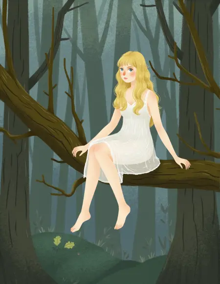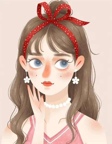 ashui illustration style, art, drawing, digital art, portrait, girl, blonde hair, blue eyes, flowers, orange lora:ashui\_flux\_v2:1