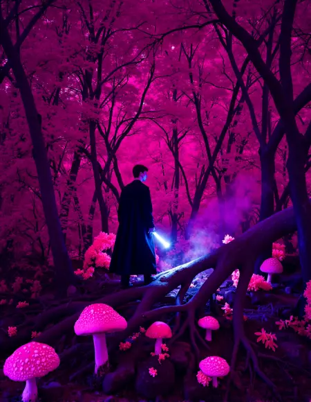 虚構的で夢幻的な雰囲気:植物は白っぽく、あるいは明るい色に映り、幽霊のような効果をもたらします。空は暗くなり、雲は背景に対して劇的なコントラストを示すことがあります。