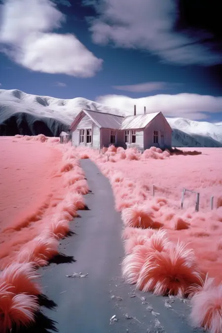 虚構的で夢幻的な雰囲気:植物は白っぽく、あるいは明るい色に映り、幽霊のような効果をもたらします。空は暗くなり、雲は背景に対して劇的なコントラストを示すことがあります。