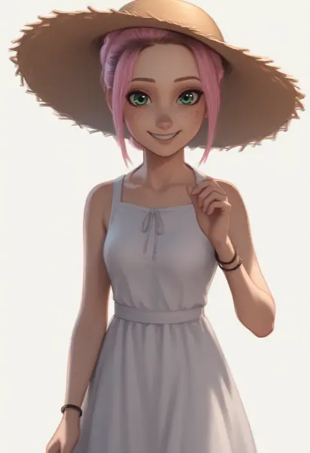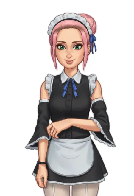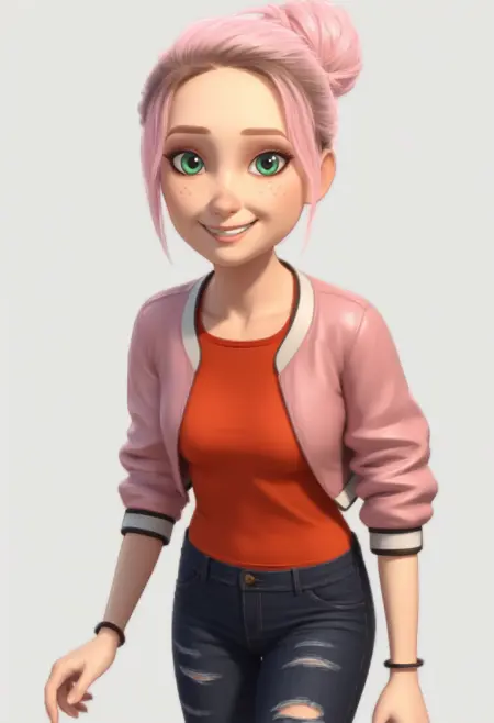 CHARACTER - Br00klynn, 녹색 눈, 분홍색 머리, 단발, 한 줄기 머리 둥글게 묶음