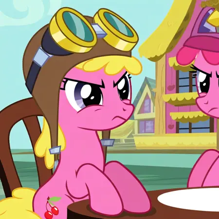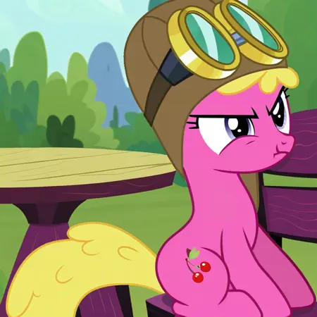 チェリーベリーは『マイリトルポニー フレンズシップは魔法』に登場する背景用のポニーです。ほとんどのエピソードで、物語の背景のどこかで登場します。また、一部のエピソードでは熱気球を操縦する能力でも知られています。
