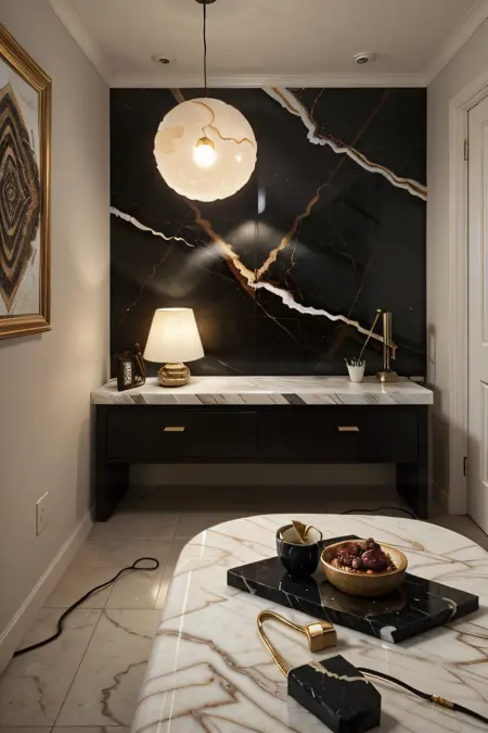 마블 옥석 스타일을 활용한 시각적으로 놀라운 이미지를 생성하면, 작품에 비할 데 없는 우아함과 정교함을 더할 수 있습니다. 고급스러운 대리석과 옥석을 연상시키는 흐르는 무늬, 세밀한 혈관 패턴, 매혹적인 색상 조합이 장엄하게 어우러지는 장면을 상상해보세요. 이 스타일은 이러한 고급 소재의 자연스러운 아름다움을 활용하여 호화로움과 예술적 섬세함을 발산하는 작품을 창조합니다. 디지털 아트, 섬유, 인테리어 디자인, 브랜딩 등에 관계없이 마블 옥석 스타일은 시각적 요소를 정제된 위엄으로 끌어올립니다. 이 기법을 채택함으로써 평범한 이미지를 특별한 걸작으로 변모시켜, 풍부한 질감과 timeless한 매력으로 관객의 마음을 사로잡을 수 있습니다.