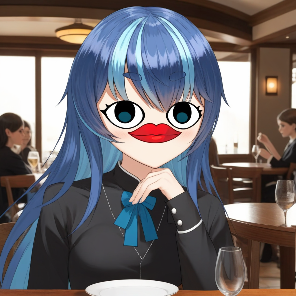 uruka, meme alternative outfit = 두 번째 옷에 👁️👄👁️ 얼굴 (코를 네거티브 프롬프트에 포함시키지 않으면 빨간 코가 나타납니다)
