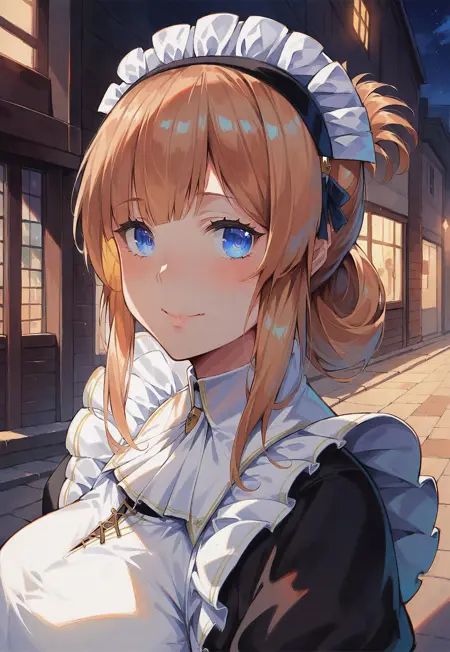Noir maid outfit, maid headdress, elbow gloves, cross-laced boots,