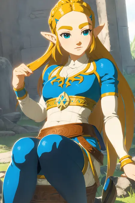 <lora:zelda_v2:0.5>, ゼルダ(プリンセス), 1girl, solo, ふくらはぎ,