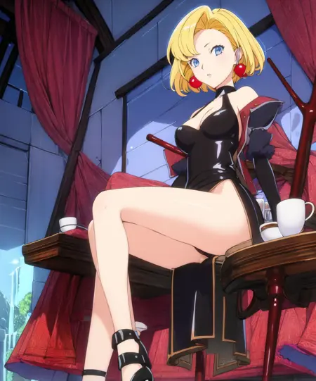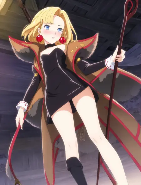 Sample prompts:lora:witch\_maria:0.75, witch_maria, 1girl, jewelry, blonde hair, solo, blue eyes, earrings, black dress, coat.