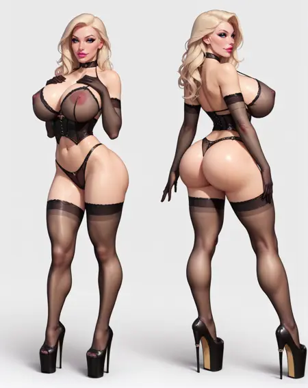 vistrac002, lingerie, choker, sheer fabric, thighhighs, platform heels, panties, gloves, see-through, corset, bra