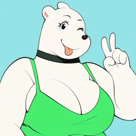 Evelyn, Bear, White Fur, Choker, Earring, Intersex, Plump