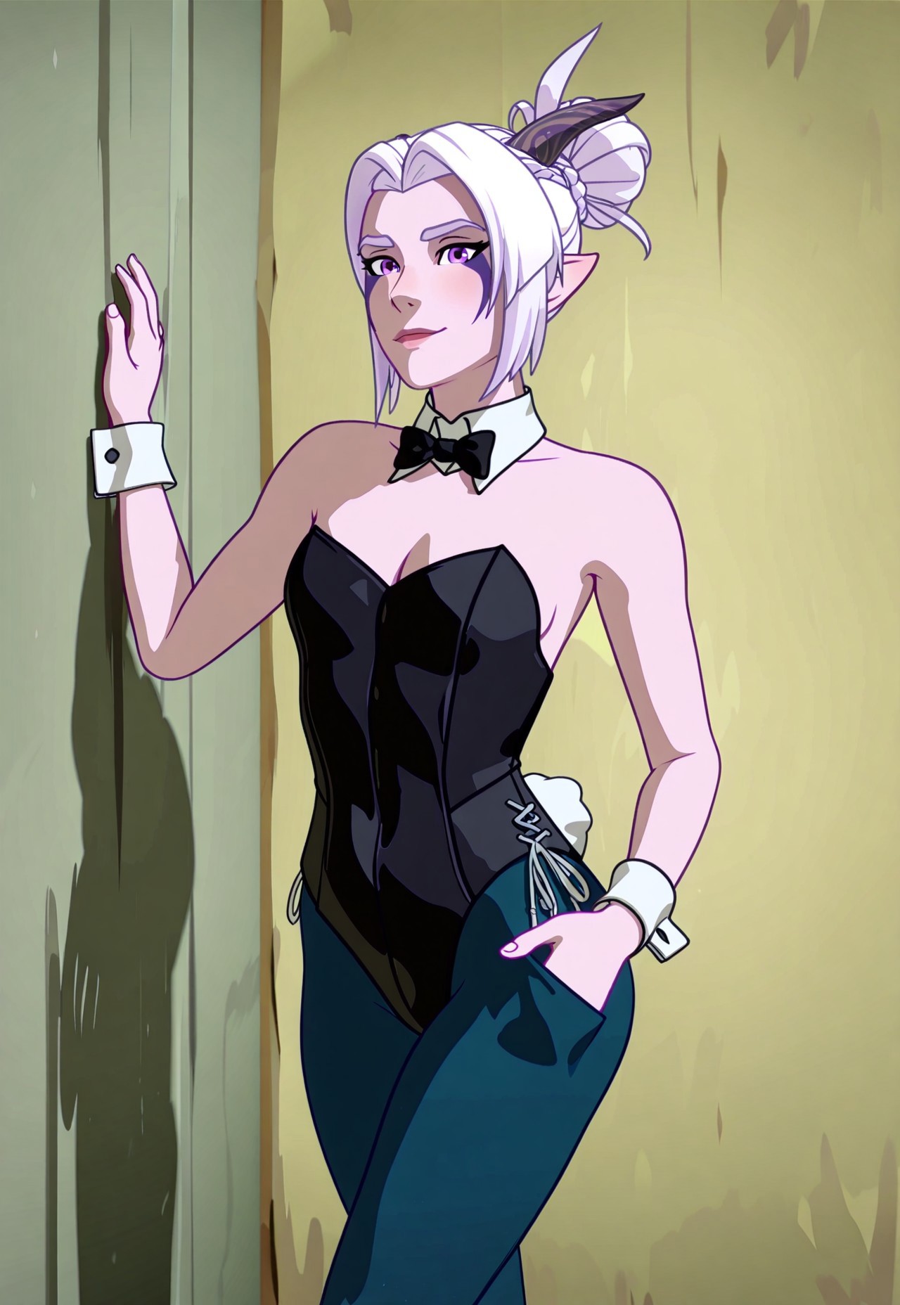 (6) [TDPStyle, Rayla, Elf, Moonelf, Horns, Blue Pyjamas, White Hair, Purple Facial Marks,]