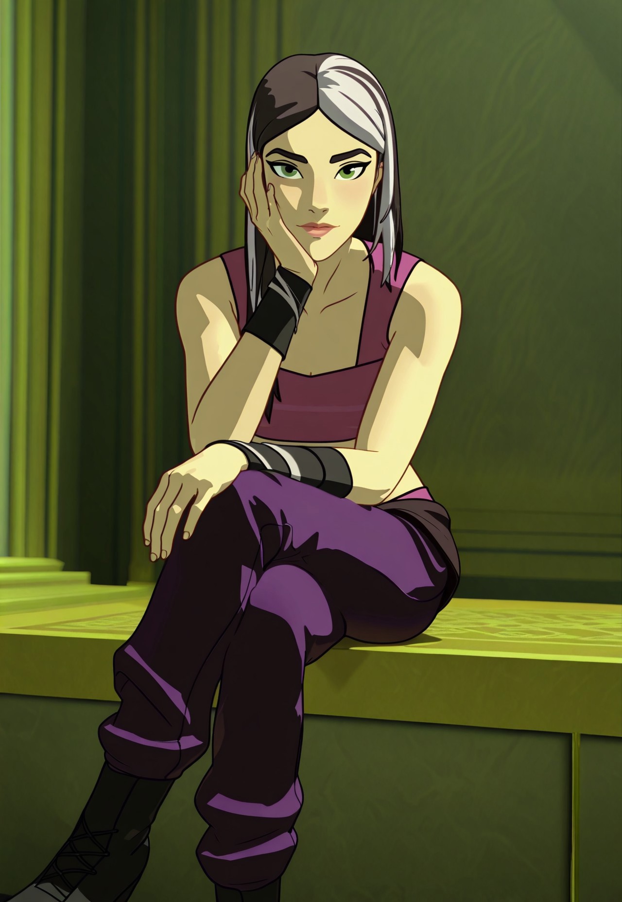 (4) [TDPStyle, Claudia, Black and White Hair, Braided, Black Mage Outfit, Green Eyes, Lipstick,]