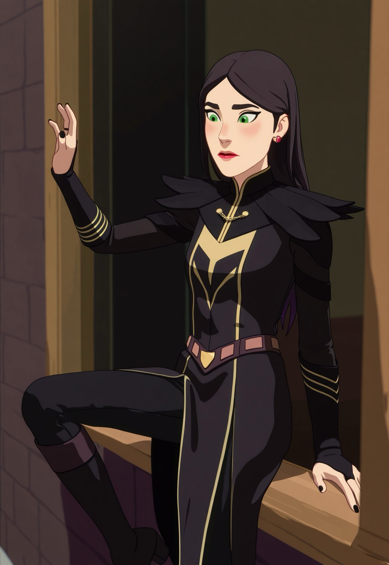 (1) [TDPStyle, Claudia, Long Black Hair, Black Mage Outfit, Green Eyes, Lipstick,]