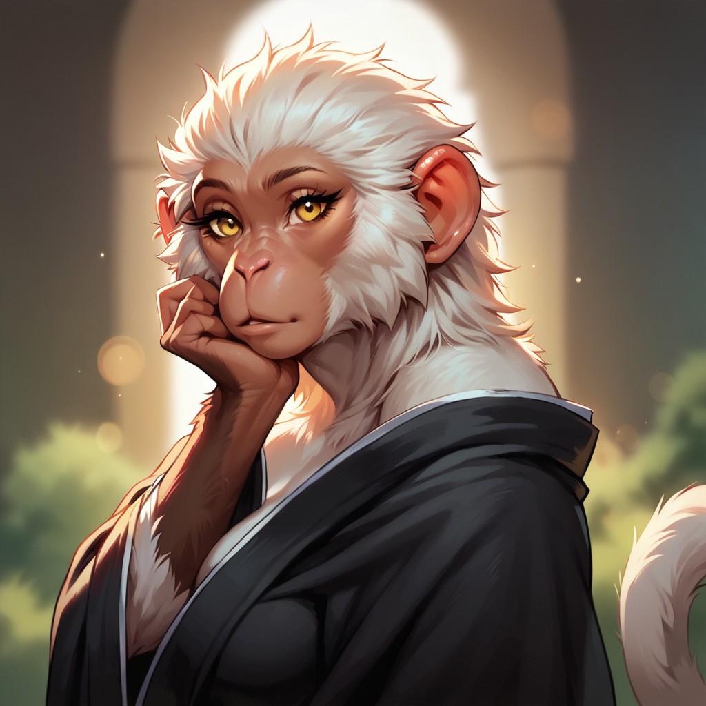 예시 프롬프트: hadozee, furry monkey, tail, black sclera, skin wing, 1male, dark skin, white fur,