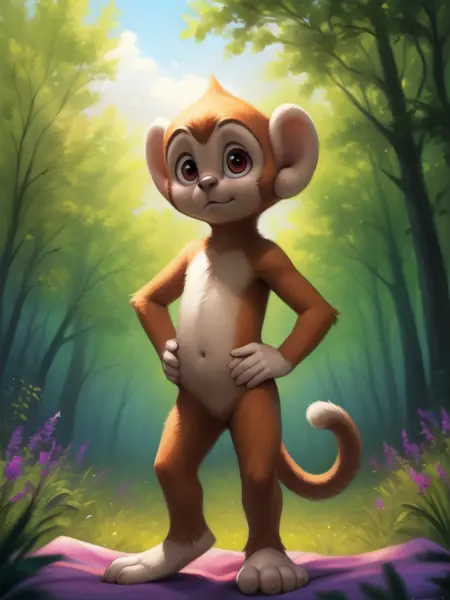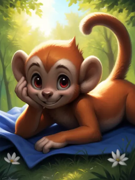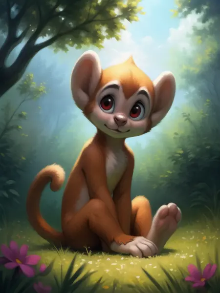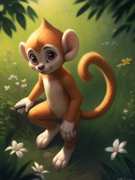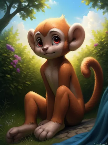 SunWukong, monkey, red eyes, tail, Orange fur, Chibi,