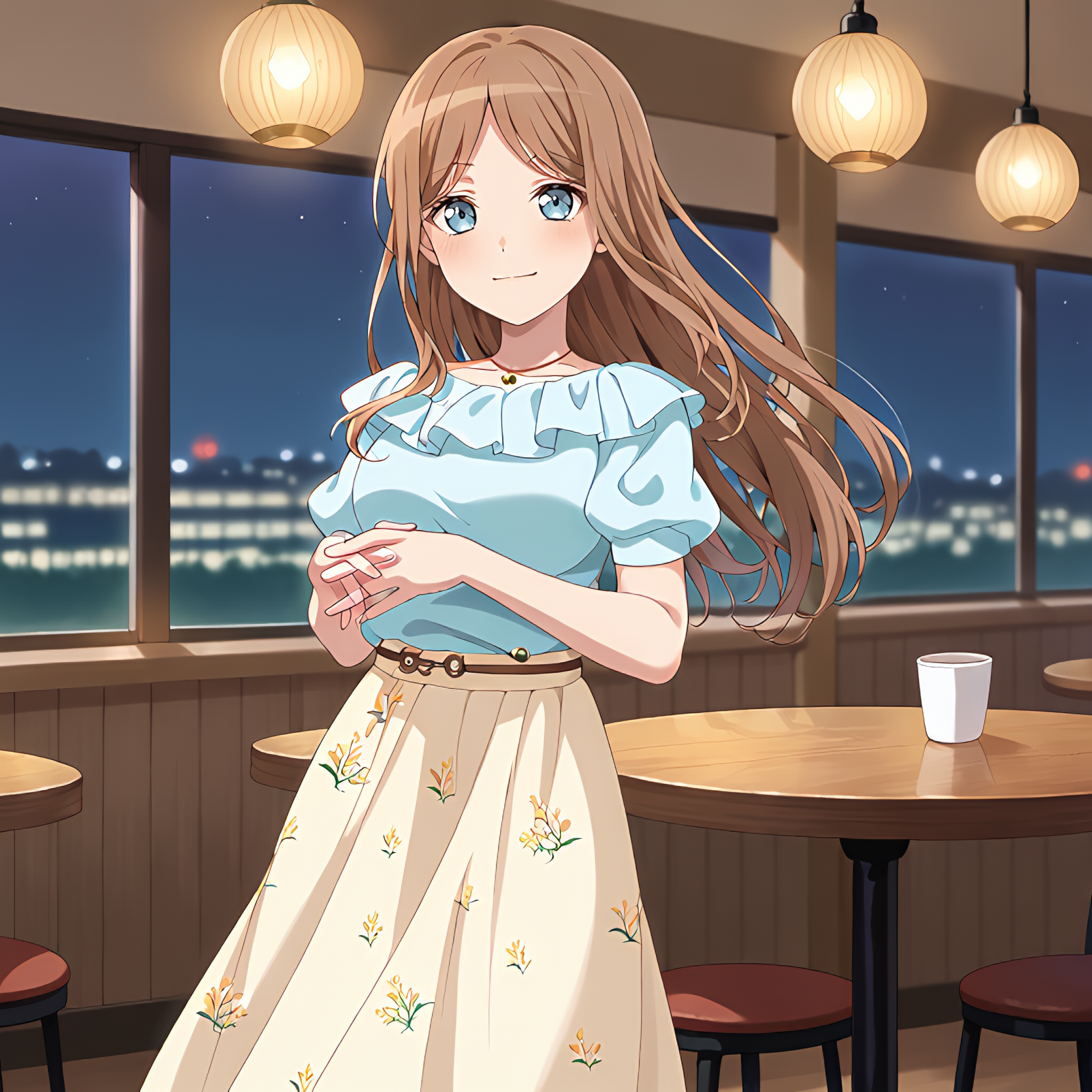 nagasakisoyo2, long hair, full body, standing, soyocau2 blouse, soyocau2 skirt, soyocau2 socks, soyocau2 necklace,