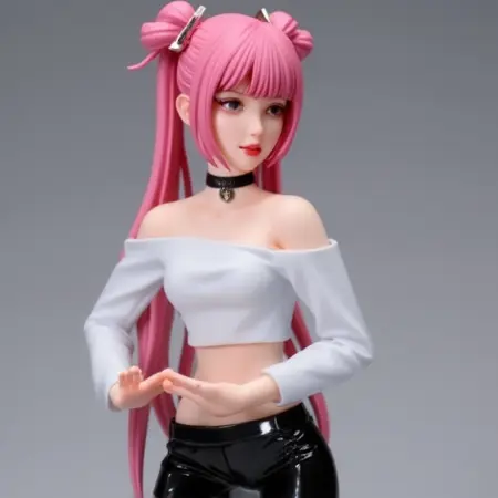 garage kit, A toy figurine, A girl with long blonde hair, wearing a