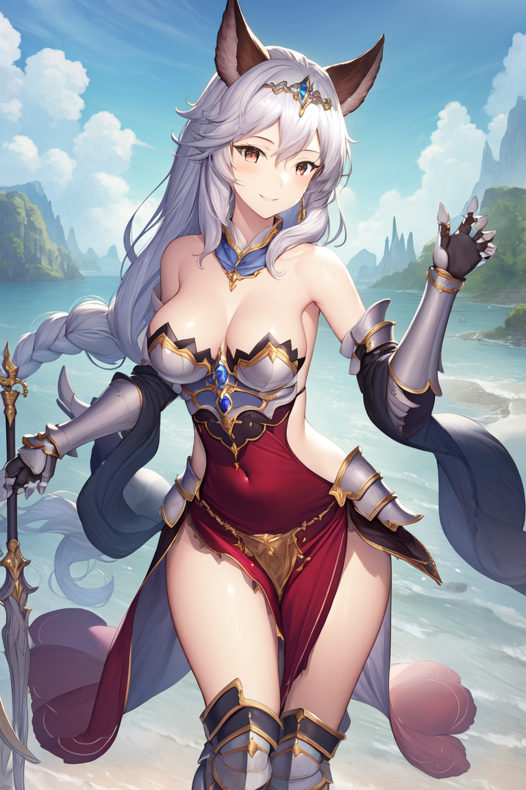"Heles, 긴 머리, HelesWind, 빨간 드레스, 가슴 보호대, 벌어진 어깨, 무기, 티아라, 장갑, 갑옷 부츠"