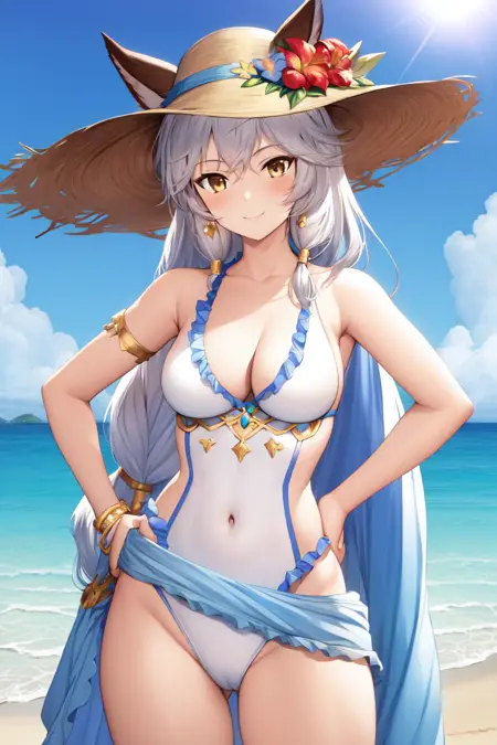 "Heles, 긴 머리, HelesSummer, 보석, 고정보, 흰색 원피스 수영복, 복부 숨김, 사론, 해양 모자, 모자 장식, 헤어웨어를 뚫는 귀"