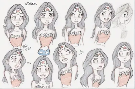 그는 오랫동안 원더우먼을 그리는 팬이었기 때문에, 제가 사용한 이미지 중 여러 장에는 원더우먼이 등장합니다. 태그에 원더우먼을 명시하면 그가 그린 원더우먼의 외모와 복장에 대한 정확한 재현이 가능합니다.