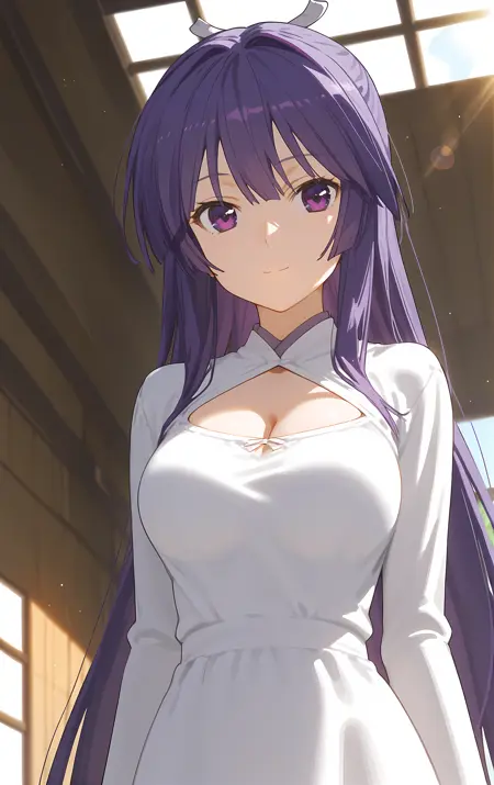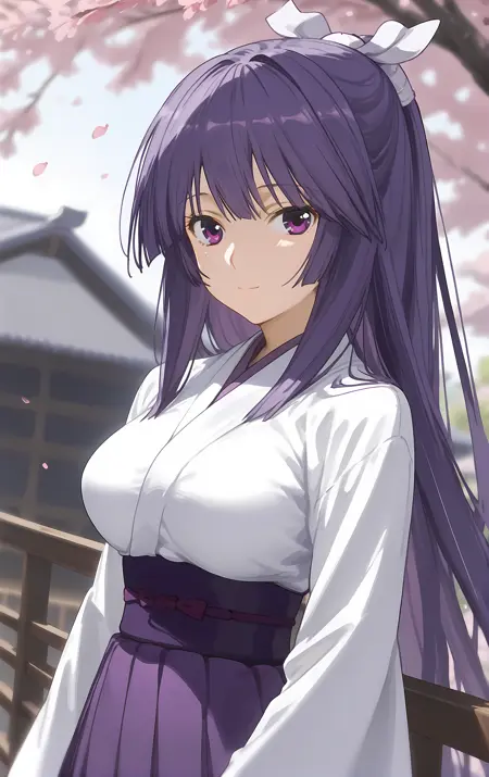 외관 → ohwx, 1girl, solo, solo_focus, purple_eyes, long_hair, japanese_clothes, purple_hair, very_long_hair, breasts, ponytail, long_hair, breasts, large_breasts,