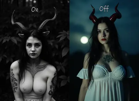 该 LoRA 还能添加神秘学元素。当强度为 1 时,除非特别提示需要颜色,否则将生成 predominantly 黑白图像。