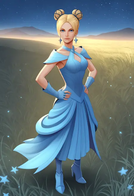 기본 프롬프트: 1girl, cynngw, blonde hair, double hair bun, blue eyes, earrings