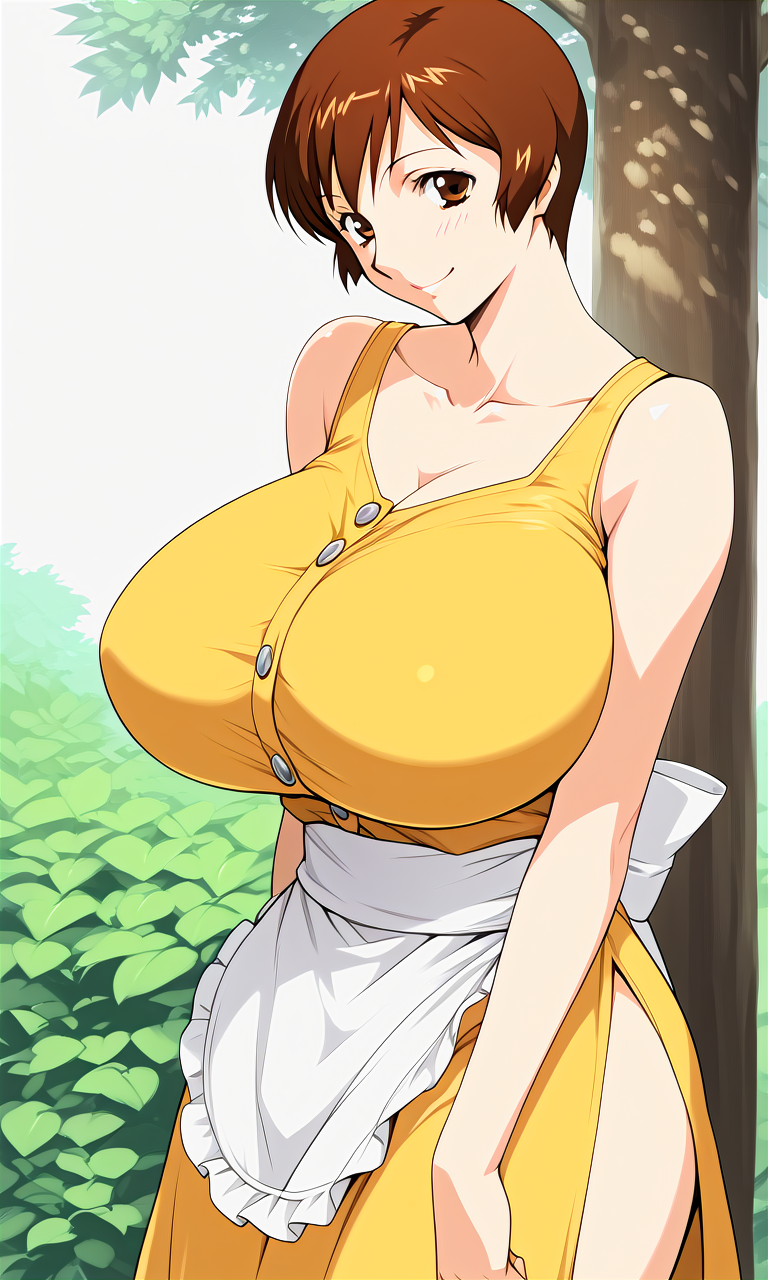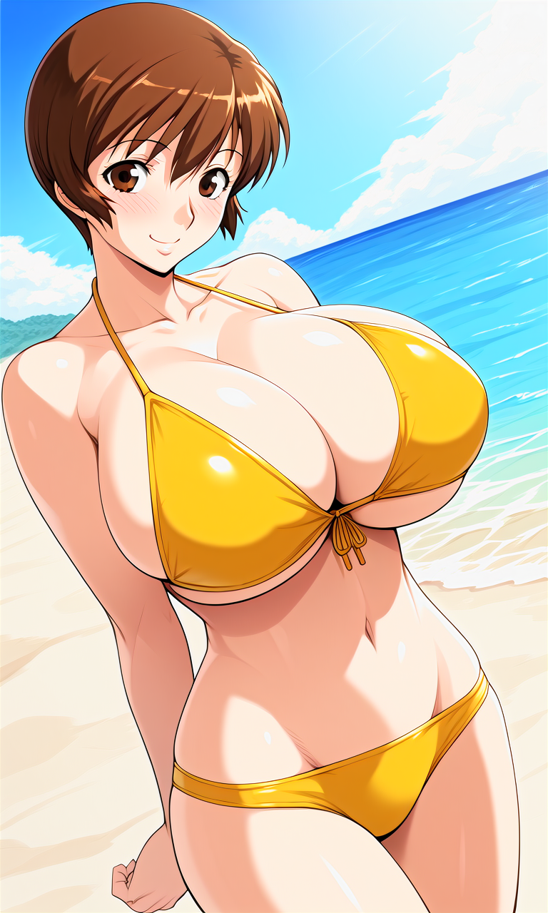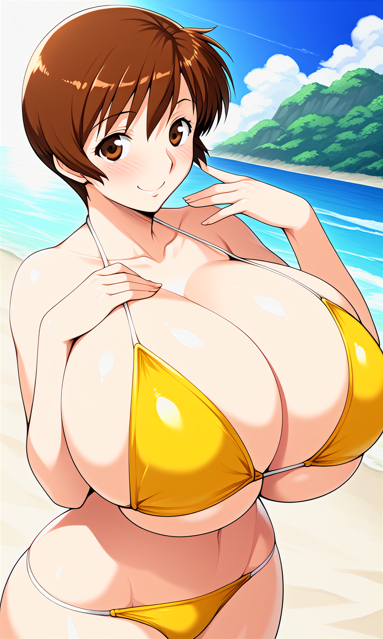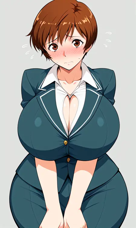 etsukoto, huge breasts,short hair,brown hair,brown eyes,