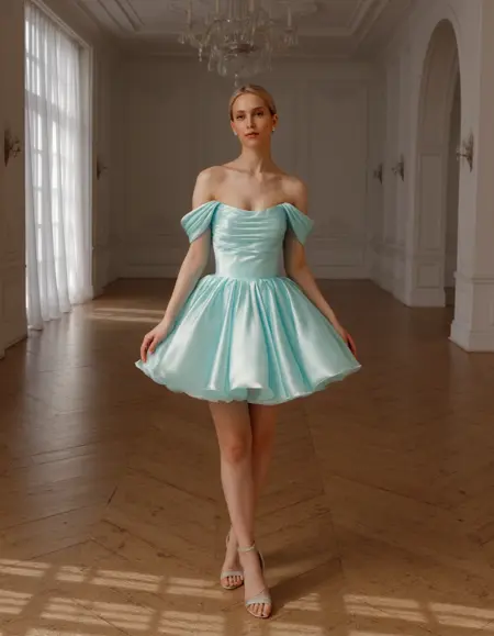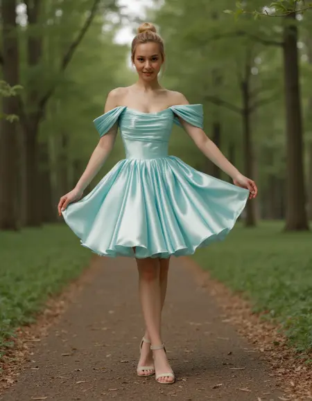 使用水蓝色和白色参考图像进行训练,但可通过提示指定任何颜色。有两种版本:露肩和非露肩。只需从提示中删除“露肩”和“露肩礼服”即可。长度也可以通过提示增加,稳定性较好。
