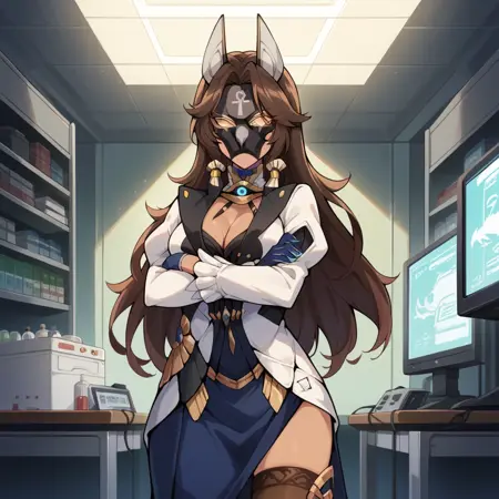Jackal, dark skin, dark-skinned female, long hair, brown hair,