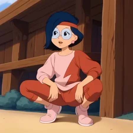annie, 1girl, solo, short hair, blue hair, black eyes, headband, glasses,