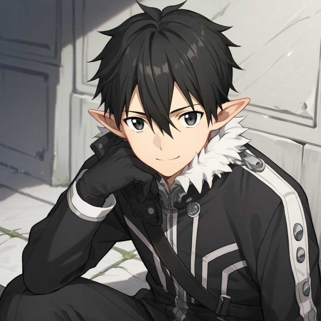 | Trained Words | Score_9, score_8_up, score_7_up, score_6_up, scre_5_up, source_anime, BREAK, 1boy, solo, male focus, black hair, black eyes, black jacket, black pants, sitting, looking at viewer, fur collar, smile, closed mouth, perfect face, perfect eyes, hair between eyes, black gloves, half gloves, pointy ears, elf ears, half bodyCopied! |