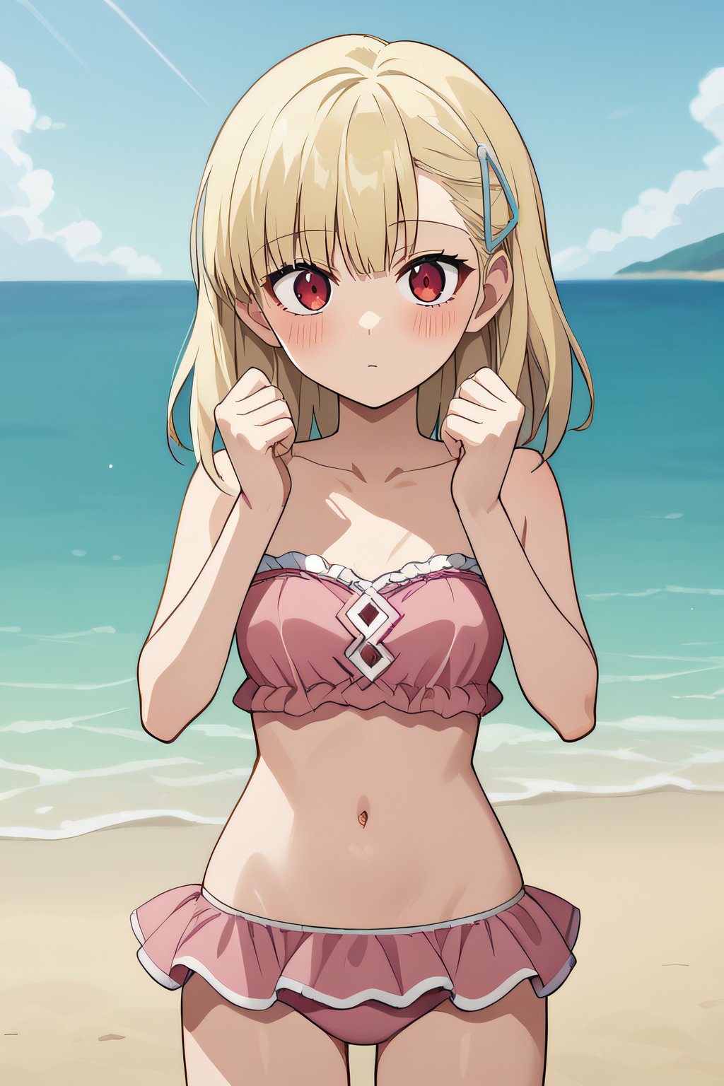 rosetta, blonde hair, medium hair, hairclip, red eyes