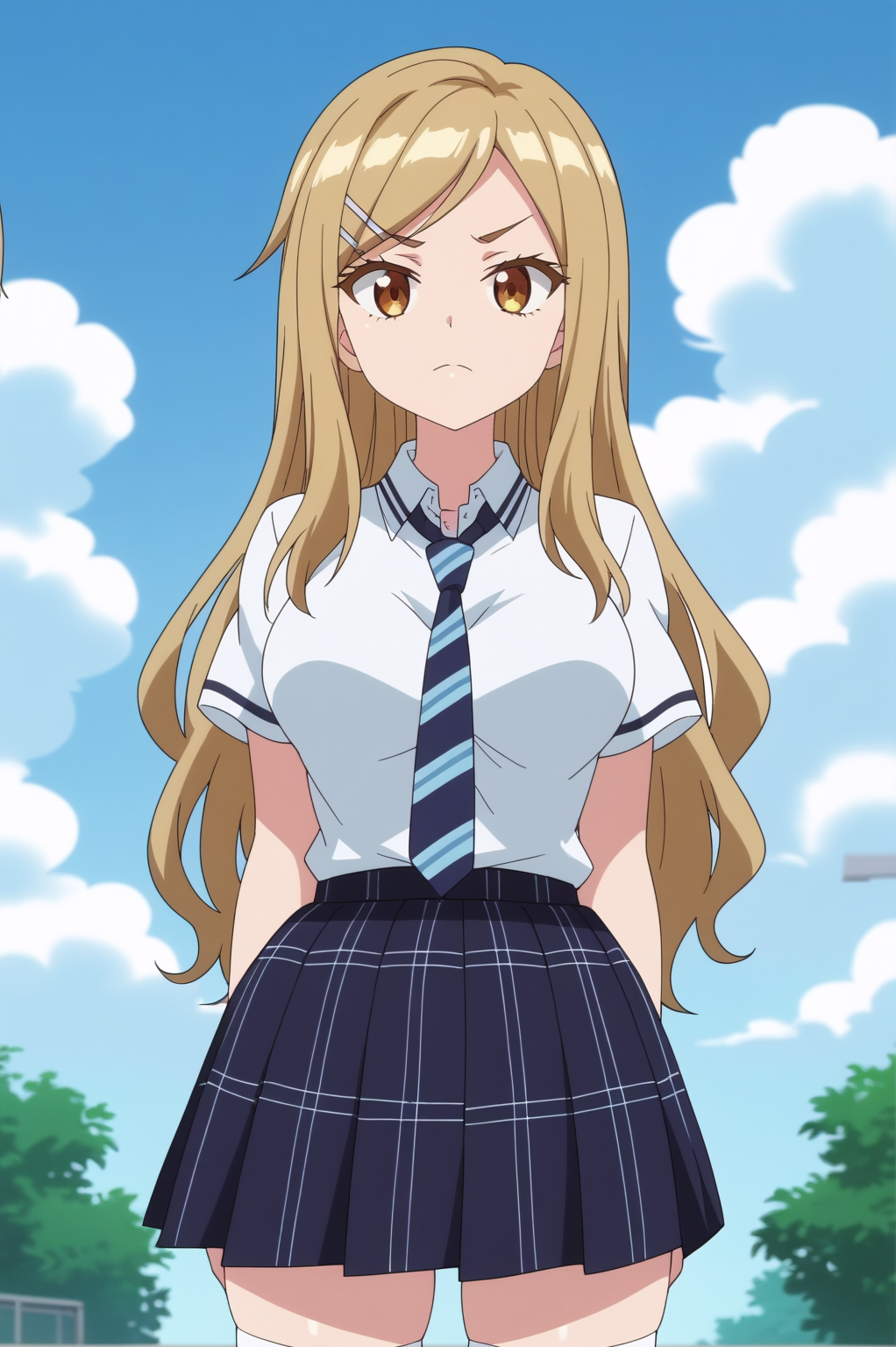 触发词:yue kurumizawa,校服,衬衫,过膝袜,长发,发饰,棕色眼睛,领带,裙子