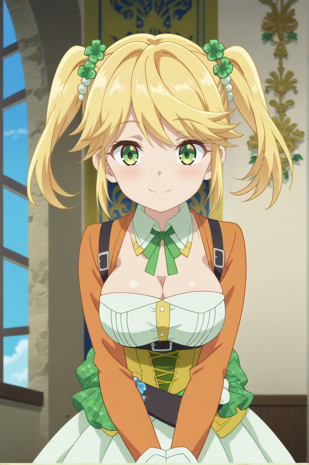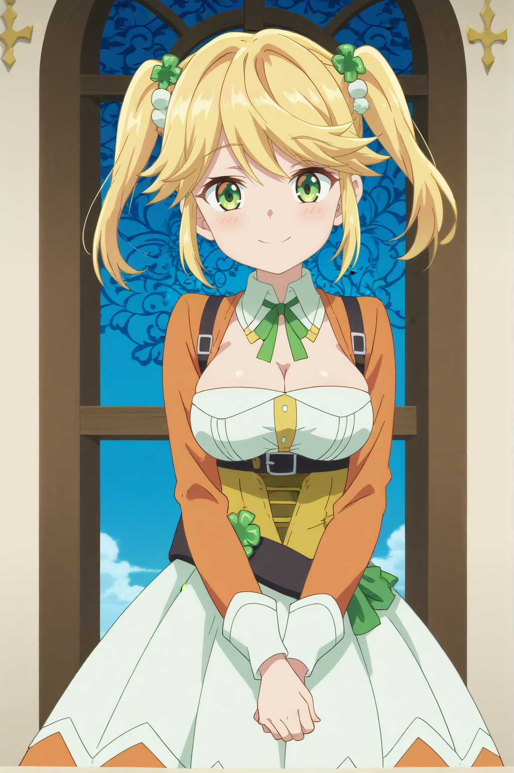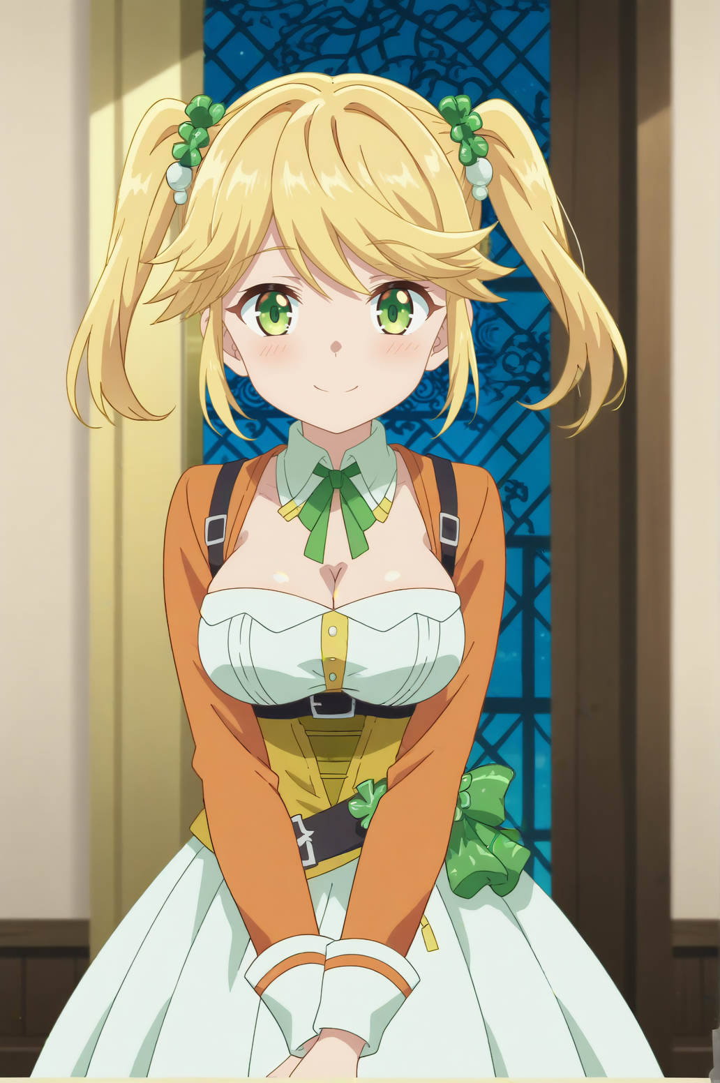 Triggers : Tarte,twintails,green ribbon,hair ornament,dress,breasts,cleavage