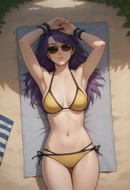 모든 경우에 사용할 수 있는 기본 키워드: - tennispmnf, 보라색 머리, 녹색 눈