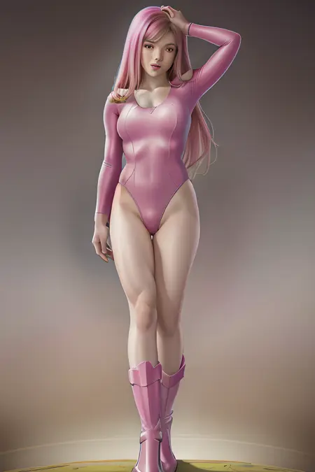 justin bailey, 1girl, long hair, leotard, pink leotard, samus aran, boots, long sleeves