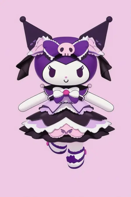 First try at making a LORA. It aims to generate blind box figurine images of the sanrio character Kuromi.