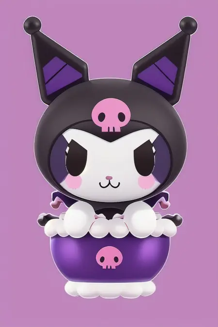 First try at making a LORA. It aims to generate blind box figurine images of the sanrio character Kuromi.