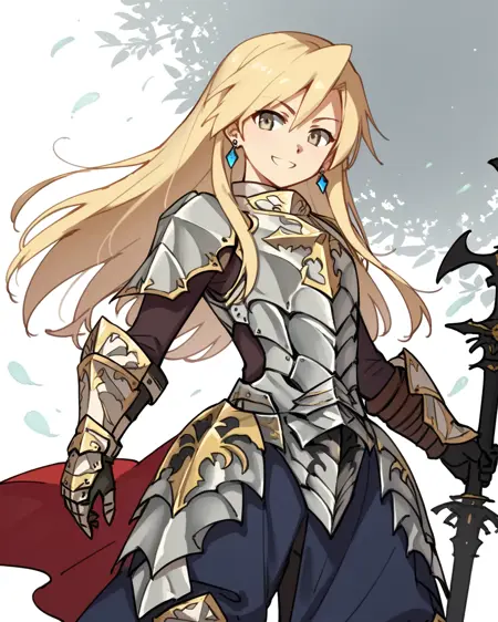 公主,单人,长发,金发,灰眼睛,盔甲,耳环,护手,护胫