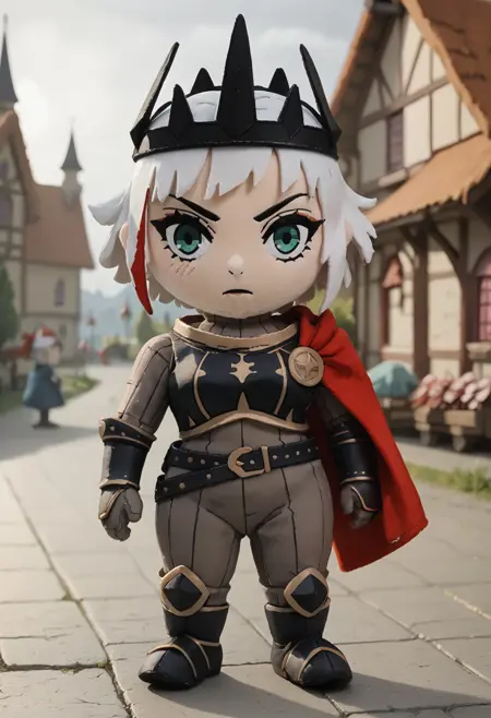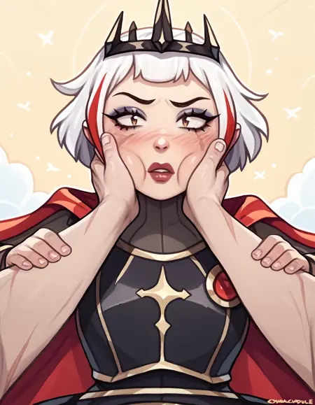 주요 외모: 짧은 머리, 흰 머리, 다색 머리, 왕관, 바디수트, 장갑, 팔보호대, 갑옷, 망토, 벨트, 흉터, 메이크업