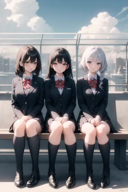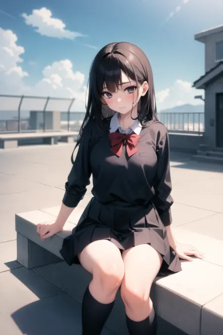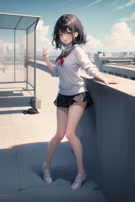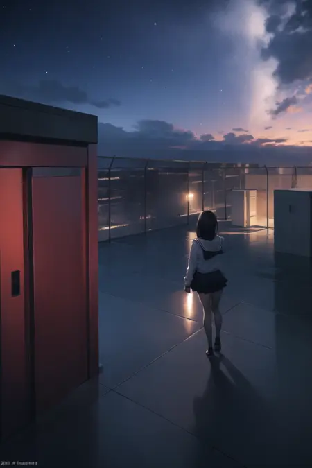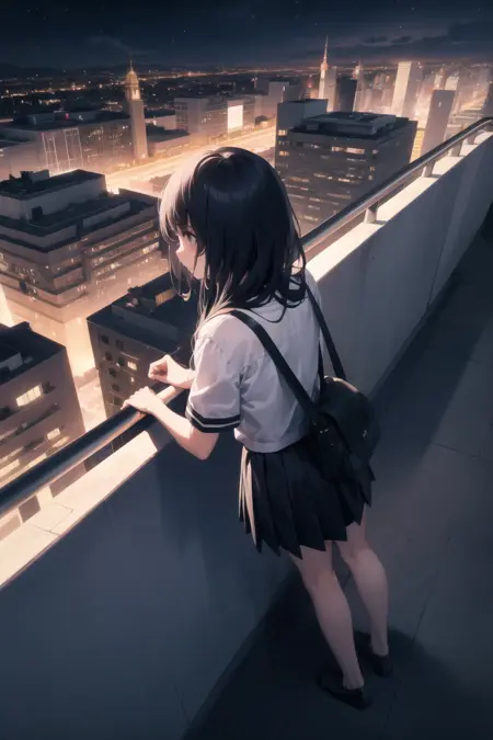 LoRA 模型训练用于生成学校屋顶背景,包含不同姿势和位置的角色,或仅生成背景本身。