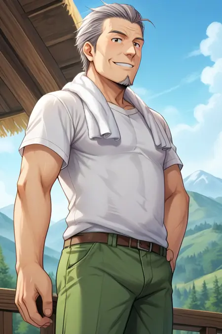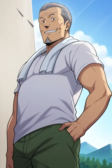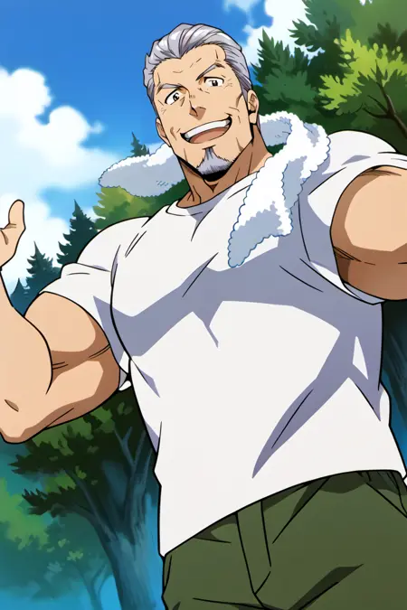 Daisaku Mikage, SSDaisaku, grey hair, short hair, hair slicked back, black eyes, facial hair, goatee